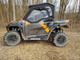 This enclosure is made of heavy duty ballistic material, and installs easily. Sides attach with wraps around your roll cage and across the top of your factory door with your choice of Velcro, self adhesive snaps (no drilling required), or pop rivet snaps (drilling required). Each window unzips from bottom allowing the door to fully open with unsnapping any snaps.